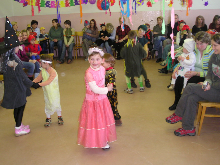 V sobotu, 3. března 2007, zažily naše děti sváteční odpoledne. Přestrojené v krásných kostýmech si přišly zatancovat a zasoutěžit na svůj karneval. Masek se sešlo víc než třicet a bylo vidět, že přípravu rodiče nepodcenili. Krásná princezna, usměvavé kouzelnice, perský princ, drak, myška, spiderman, malý kuchař, krteček, Bořek stavitel a spousta dalších. Všechny děti se vesele bavily a za své tanečky, soutěže a krásné masky si vysloužily odměnu.